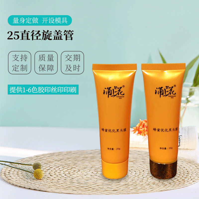 25直径ロータリーキャップチューブ黒髪膜アロエベラジェルホース旅行分注ボトル梱包材ロゴ印刷