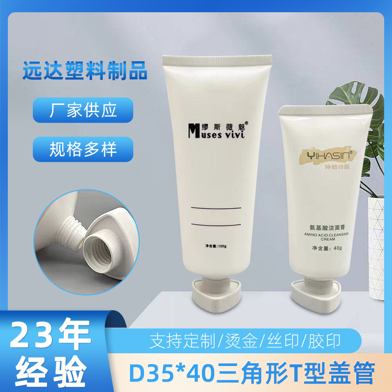 三角形のt型キャップチューブ60-120g化粧品ホース包装材pe白い日焼け止めボディミルクホースメーカー