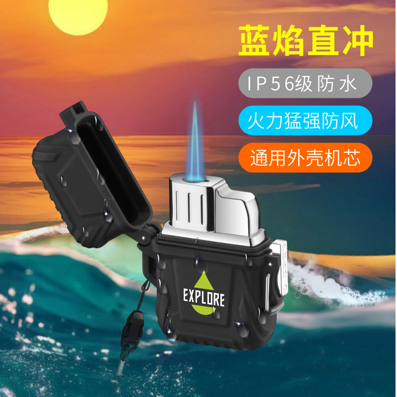 屋外防水ストレートシングルシングル火ライター男性ギフト釣り防水ライタークロスボーダー卸売