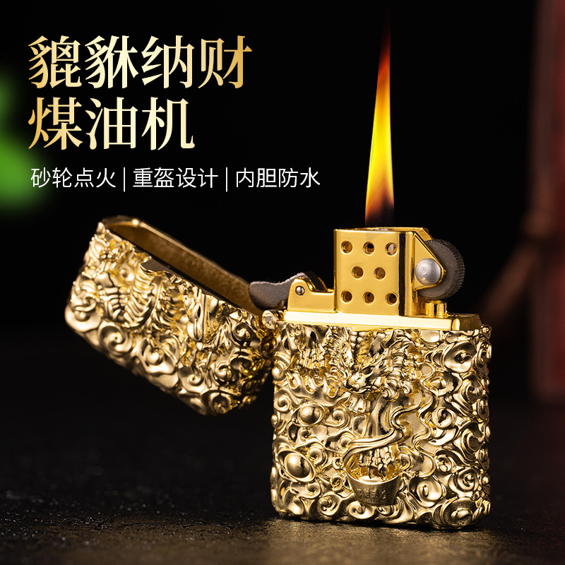 立体レリーフ灯油ライター重甲透かし彫り多色灯油ライタークロスボーダー卸売り