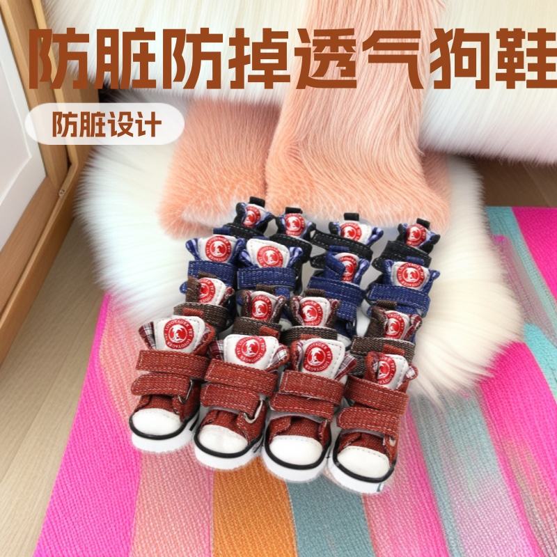 22ネット赤ズックペット靴滑り止め通気性比熊テディ小型犬犬靴カバー4匹ペット靴