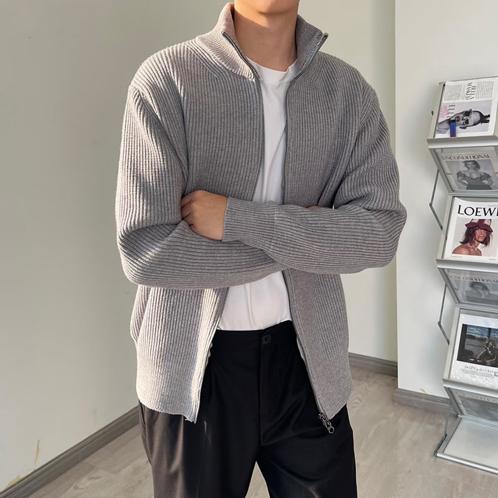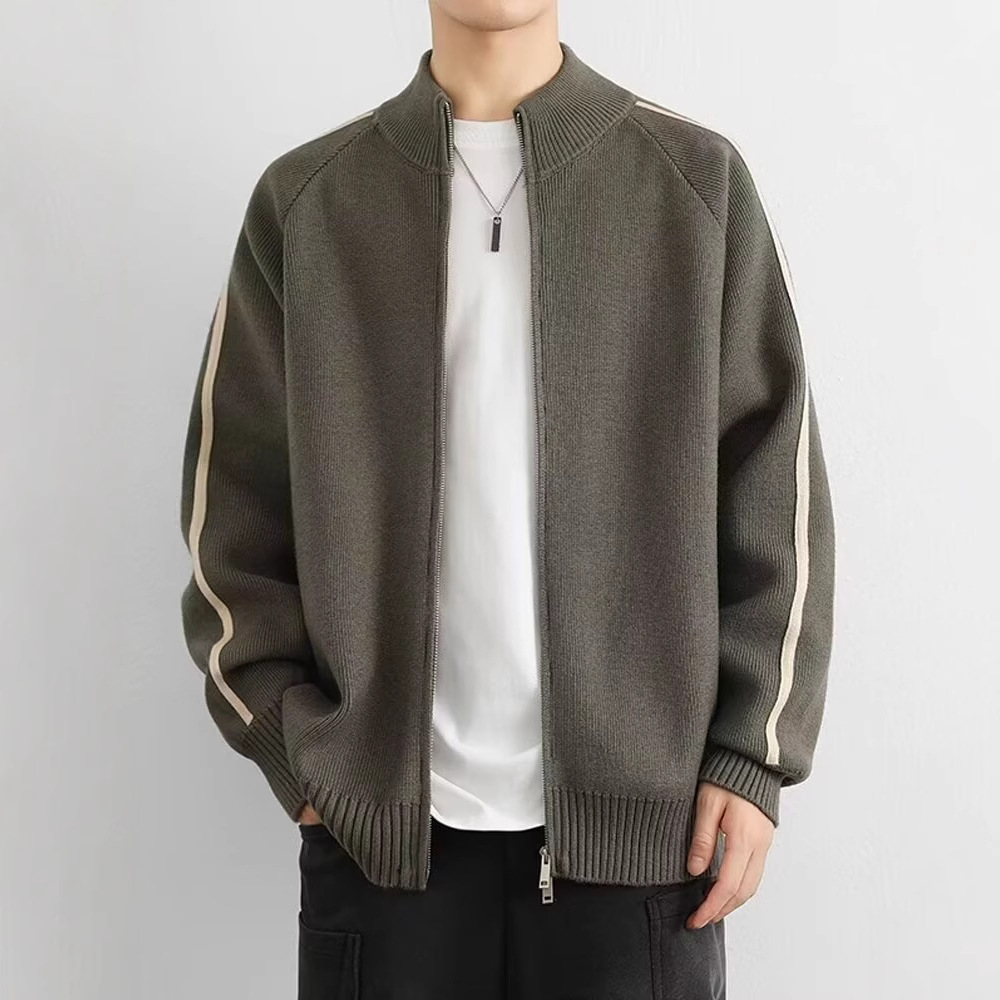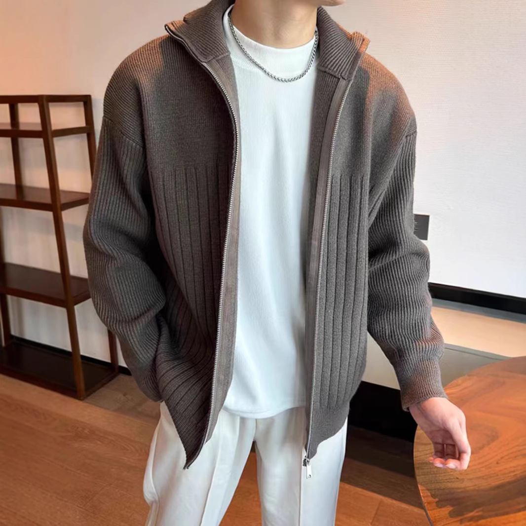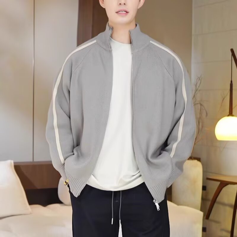 ニットカーディガンジャケット男性春秋潮牌立襟ジャケット男性高級感ゆるいかっこいいセーターセーターセーター餃子