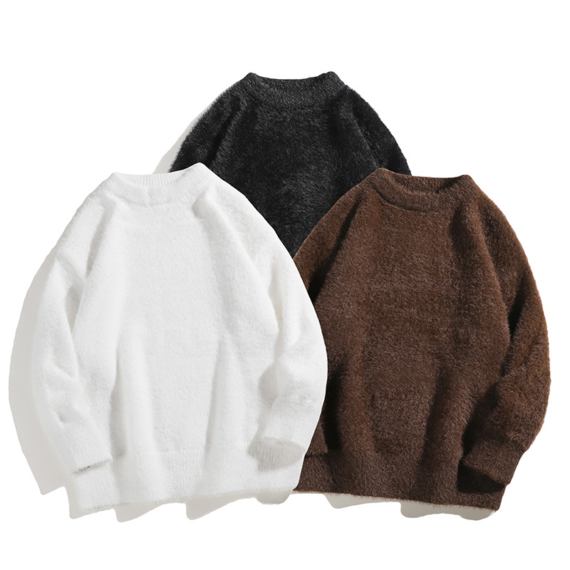 ミンクの毛のセーターの男性の秋冬の潮の純色のゆったりしている頭の新型の怠惰な風のカップルの柔らかいモチモチのニット