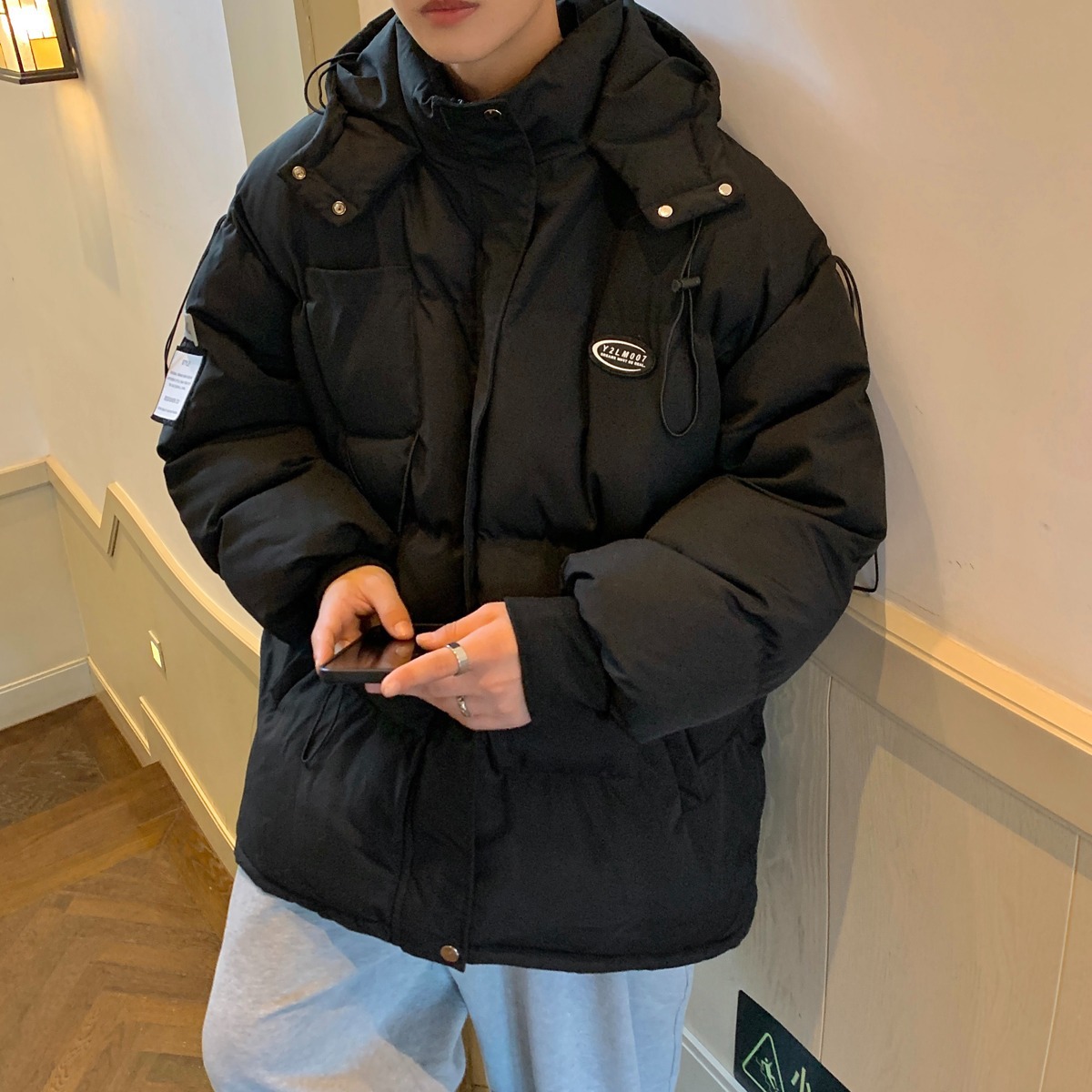 男性の冬の新型は保温防風港風国潮アメリカのオリジナルのゆるい潮牌の大きい綿入れのパン服を厚くします。