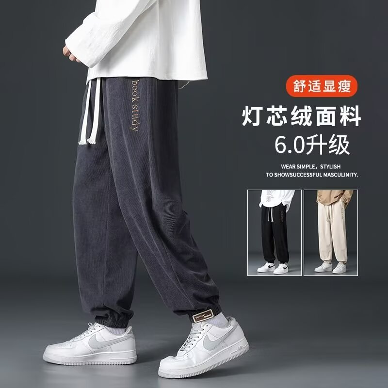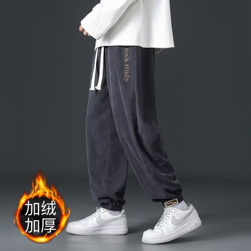 コーデュロイの長いズボンの男性の秋冬のベルベットの厚い束の足の大きいサイズの青少年の学生の香港風のカジュアルなズボン