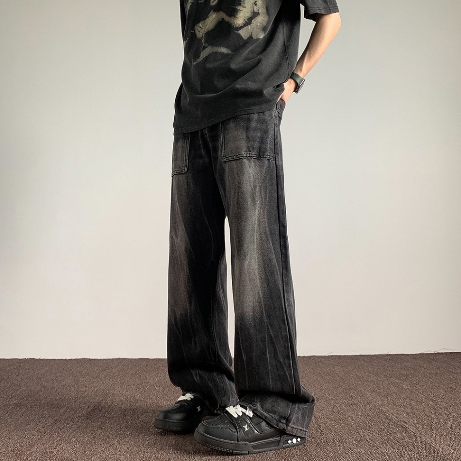 ジーンズを水洗いする男性夏のアメリカのレトロなファッションブランドのごろつきは、グラデーションがゆるいストレートで、カジュアルなズボンを染めます。
