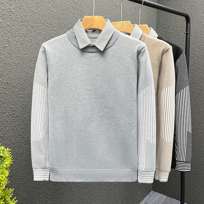 軽熟風シャツ襟セーター男春秋日本ファッション偽2枚ニットかっこいいカジュアル下着