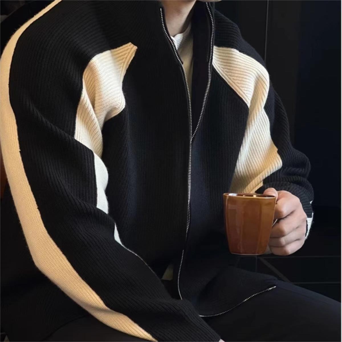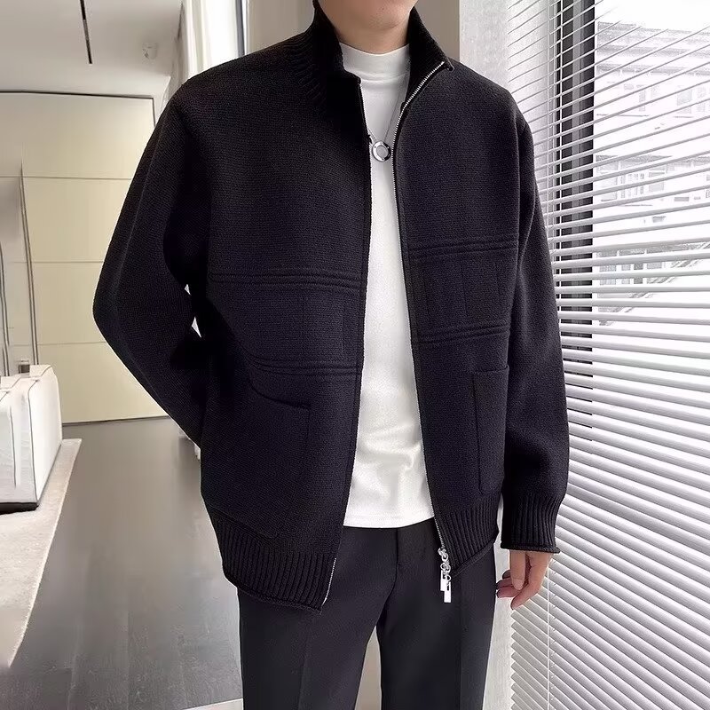 メンズ軽熟風高級感春秋カーディガン男性ニット冬デザイン感ファスナーコート
