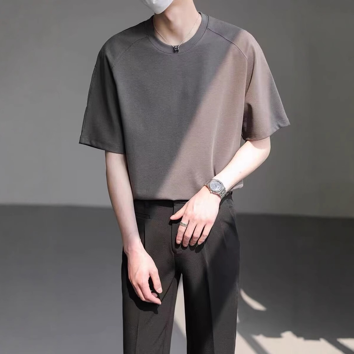 クロスボーダー夏新作薄手無地綿メンズ半袖Tシャツ韓国風メンズ半袖無地Tシャツボトリングシャツ