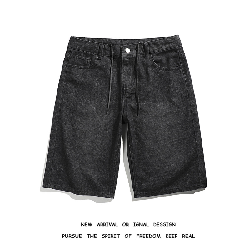 2025年新作メンズ春薄手ルーズストレートデニムショートパンツ、トレンドで万能な5点ミドルパンツ
