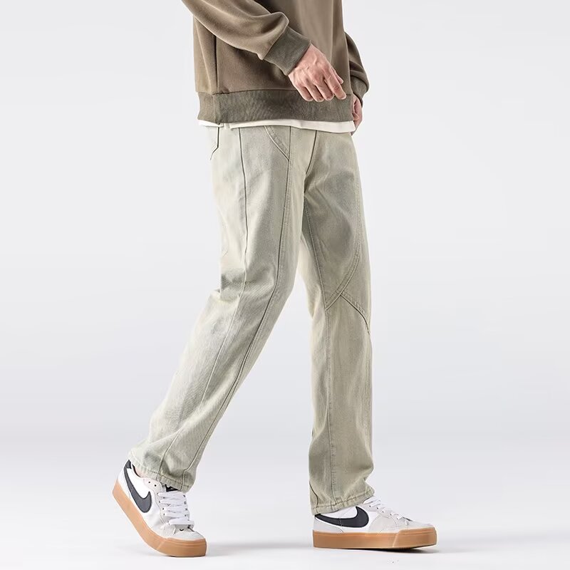 メンズジーンズアメリカンハイストリートバイブ構造デザインローエッジジーンズメンズストレートハイエンドパンツ