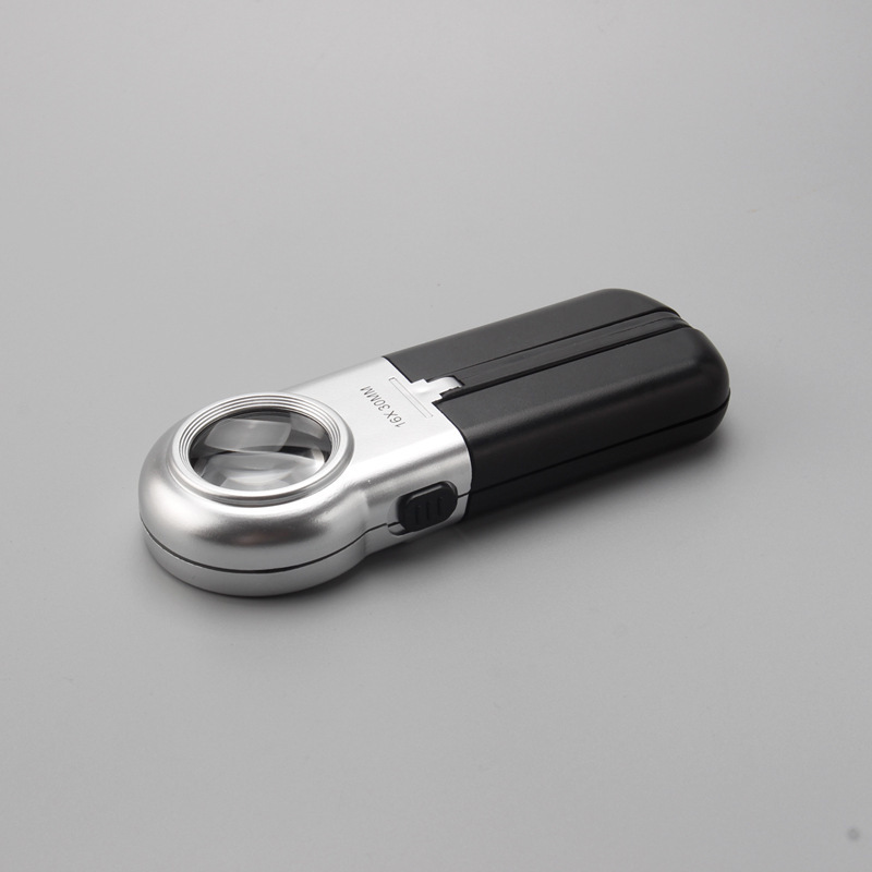 ルーペ2个ledライト子供プラスチック老人手持ちポータブル折りたたみスタンド式照明ジュエリーミラー16倍