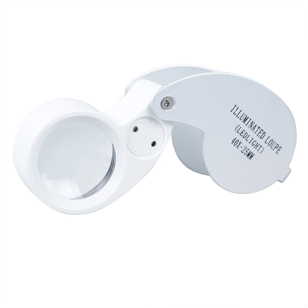 工場卸売40x25mm ledライト付き拡大鏡hd子供のおもちゃ折りたたみ鑑定ジュエリーmg21011