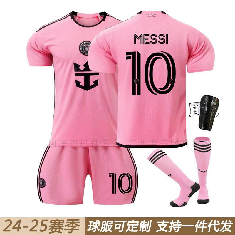 24-25マイアミホームピンク10号メッシ9スアレス23ベッカムのサッカー服セット