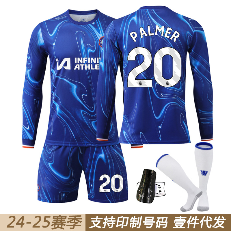 2425チェルシーホーム秋冬長袖サッカー服14フェリックス6シルヴァ20パーマーメンズスーツ
