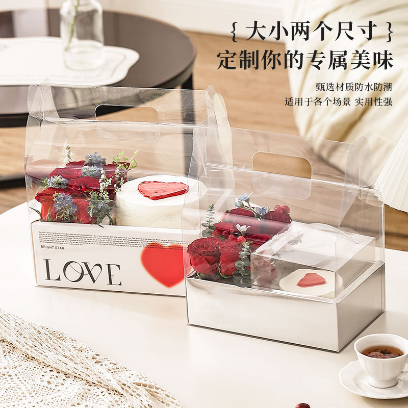 Ins風バレンタインデー七夕母の日ケーキ手提げ生花箱教師の日透明ギフトボックス卸売り