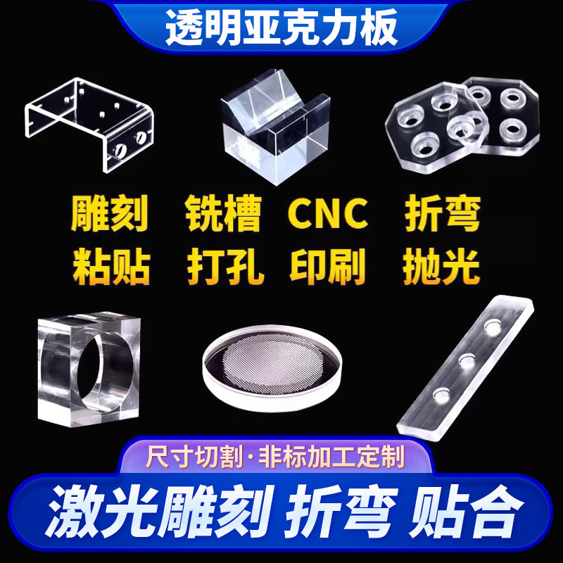 アクリル板透明レーザー切断彫刻加工曲げカラーつや消し黒プレキシガラス板UV印刷