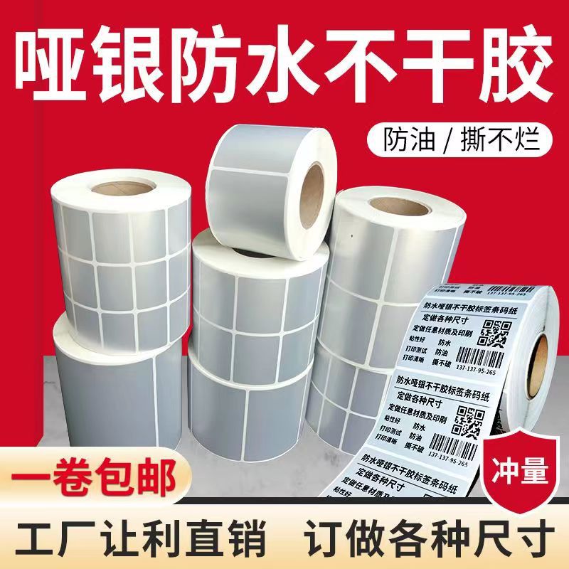 亜銀ラベル紙防水防油がぼろぼろになっていない乾いた銀petバーコード紙手書き空白シール印刷
