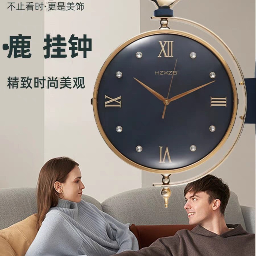 創意北欧の軽い豪華な小鳥鹿の両面の掛け時計のファッション的なオフィスのホテルの装飾の時計の家庭の客間は壁の時を掛けます。