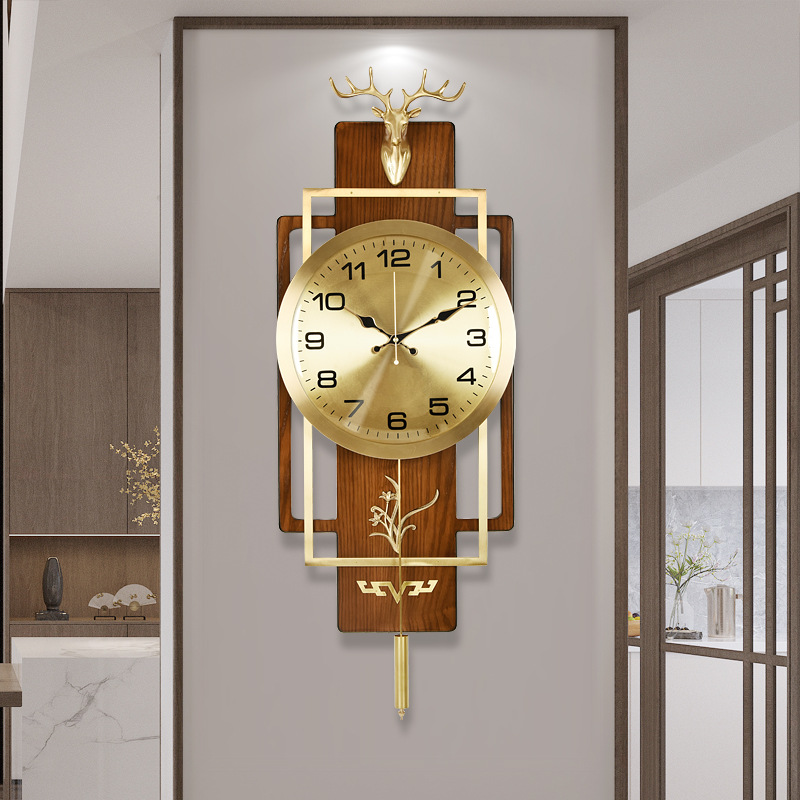 新しい中国式時計掛け時計リビングルーム家庭用ファッション真鍮中国風クリエイティブ大気シンプルで軽い豪華な壁掛け時計