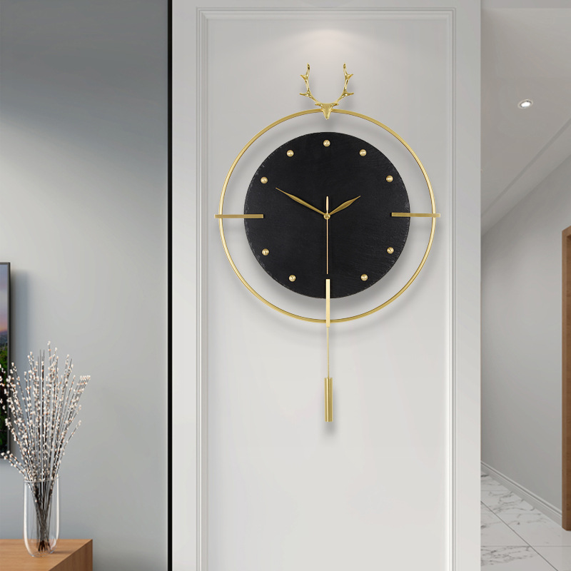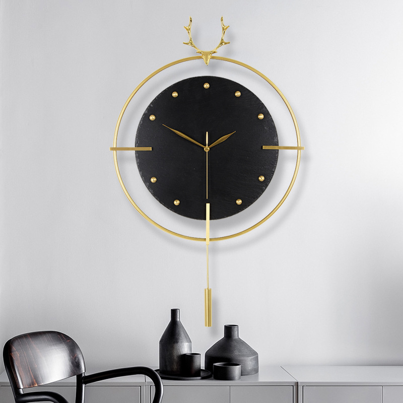北欧の鹿の頭の岩の掛け時計の客間のファッションのアイデアの大気の現代の簡単な時計の軽い豪華な掛け壁の極めて簡単な時計