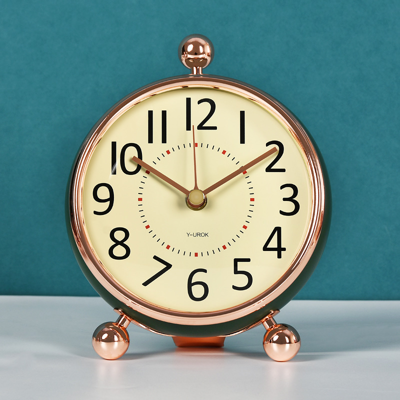ハイエンドの金属の置き時計の北欧の軽い豪華な台の時計の家庭用のファッション的なアメリカのデスクトップの時計の現代の簡単なベッドの装飾品