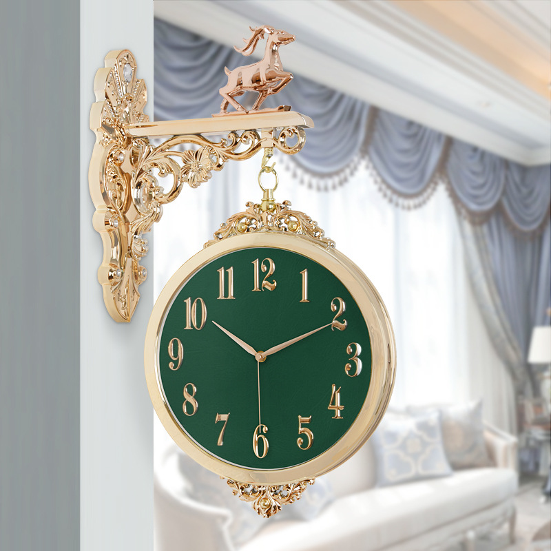 北欧の軽い贅沢な両面の大きいサイズの掛け時計のヨーロッパ式の復古の客間の静音の両面の時計のファッションのアイデアの家庭用の時計