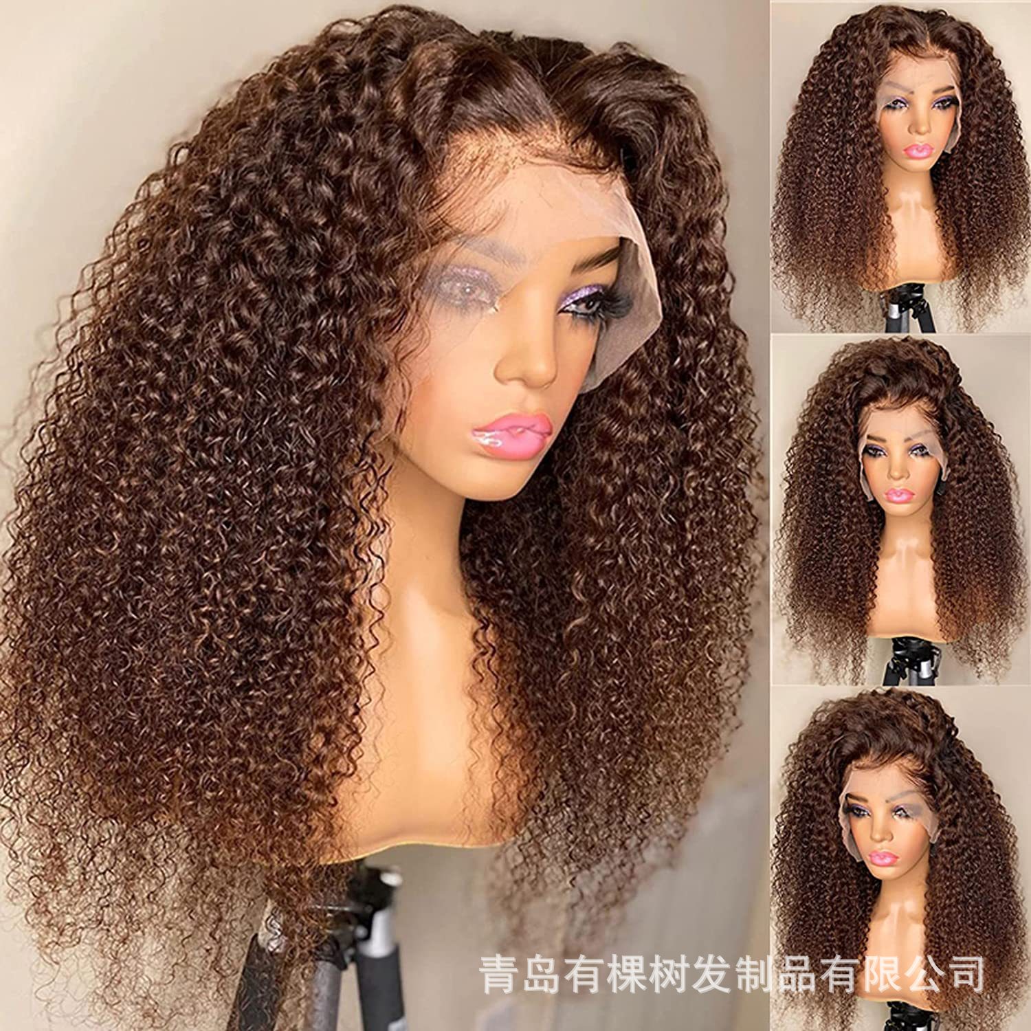 かつら欧米アマゾン新製品化繊前レースかつらカバー茶色アフリカ小巻つや消し高温糸