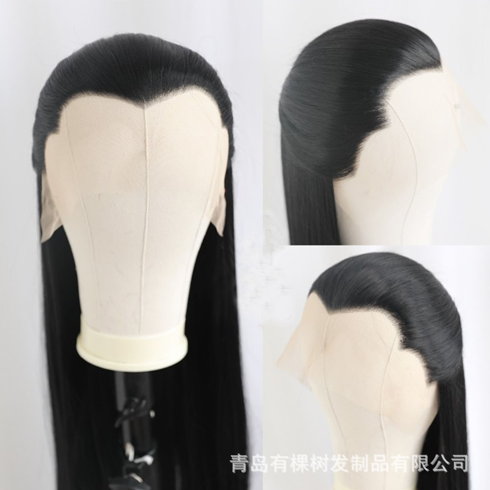 大きいt型の外国貿易のかつらの漫画のかつらの黒い長さはまっすぐです。