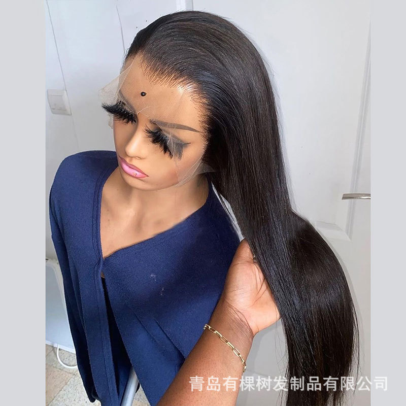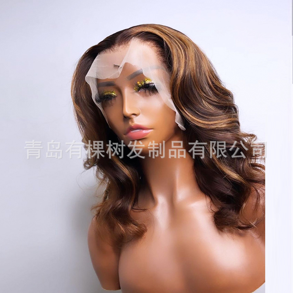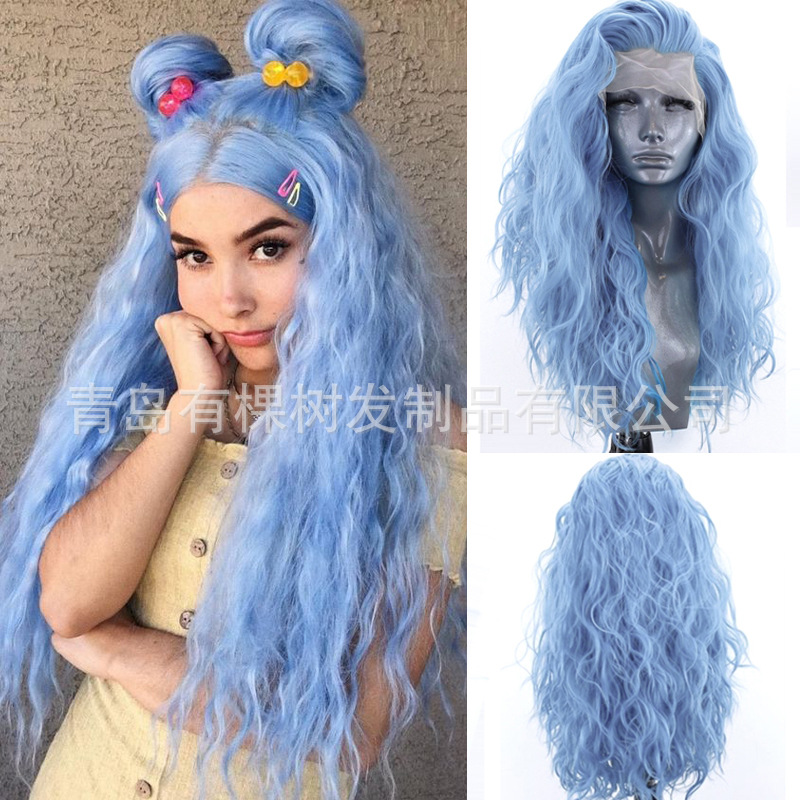 国内手溝13*2.5スカイブルー化学繊維前レースかつらセット自然髪線スポットかつら卸売り