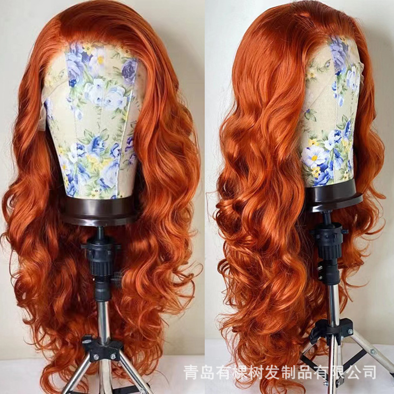 外国貿易の欧米の化学繊維の前のレースのかつらの全体の頭のカバーのオレンジ色の大きい波のファッションのふわふわしている現物は代行します。