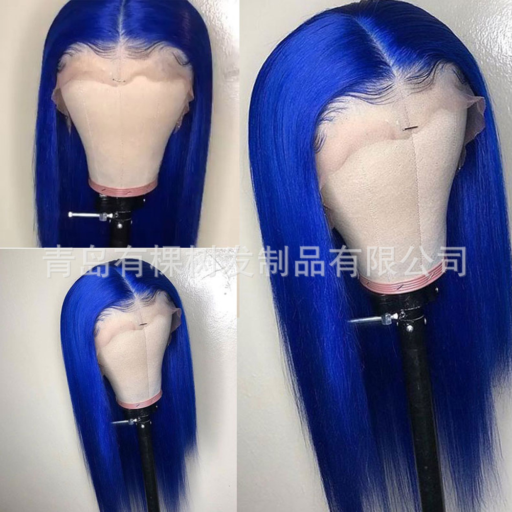 欧米の人気女性かつら前レースかつら女性の明るい青いロングストレート化学繊維かつらカバーwig