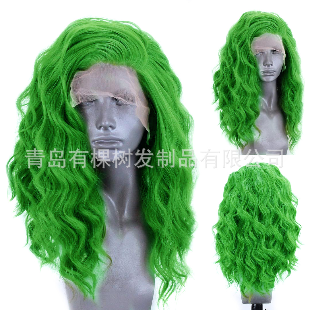 国内手溝13*2.5グリーン化繊前レースかつらカバー自然髪糸現物かつら卸売り