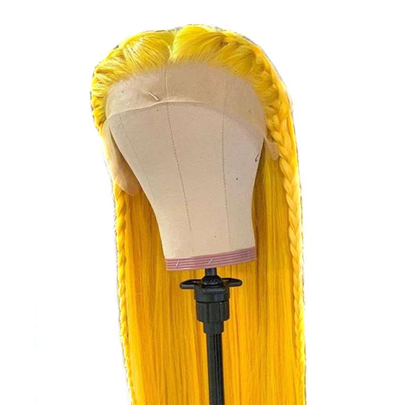 欧米の人気女性かつら大手溝前レースかつら女性黄色ロングストレート化学繊維かつらカバーwig