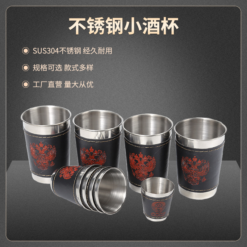 国境を越えたステンレスグラス巻き皮セットグラス居酒屋屋外レジャーカップ直営ビールグラス