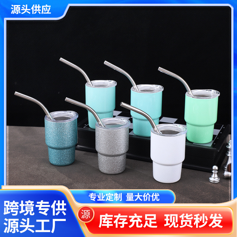 工場直販 304ステンレス製ストロー付きビールカップ 男女兼用 家庭用携帯二重構造ミニウォーターカップ ドリンクカップ