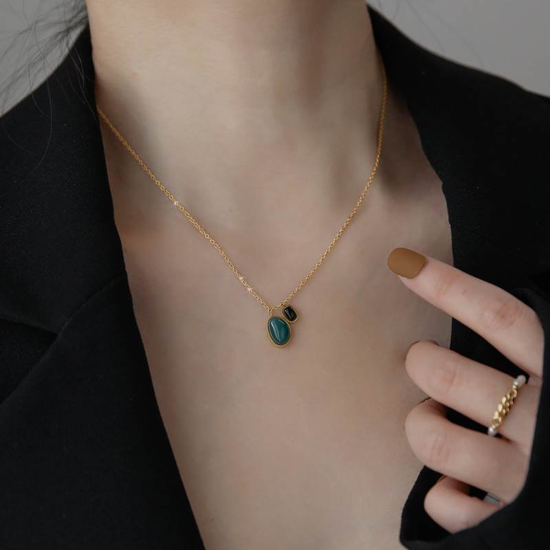 おしゃれでシンプルなチタン鋼のネックレス女性の個性ファッション人工瑪瑙ペンダントレトロでシンプルで優雅なアクセサリーは彼女に送ります。