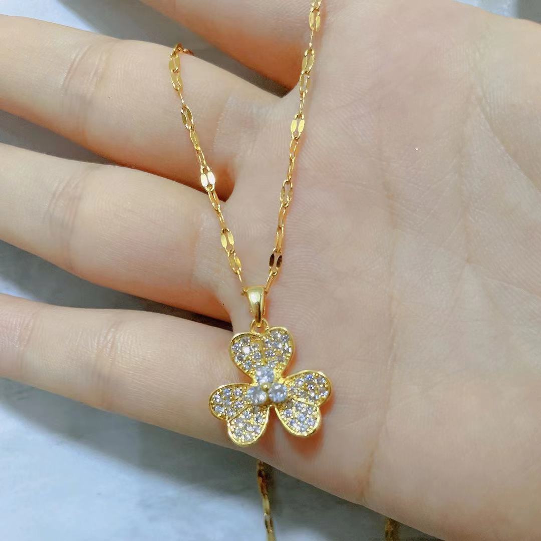 ネックレスの女性の爆発的な気質の新型は色を落とさないジルコンの鎖のファッションの簡単なネックレスのネットの赤い個性の簡単な金