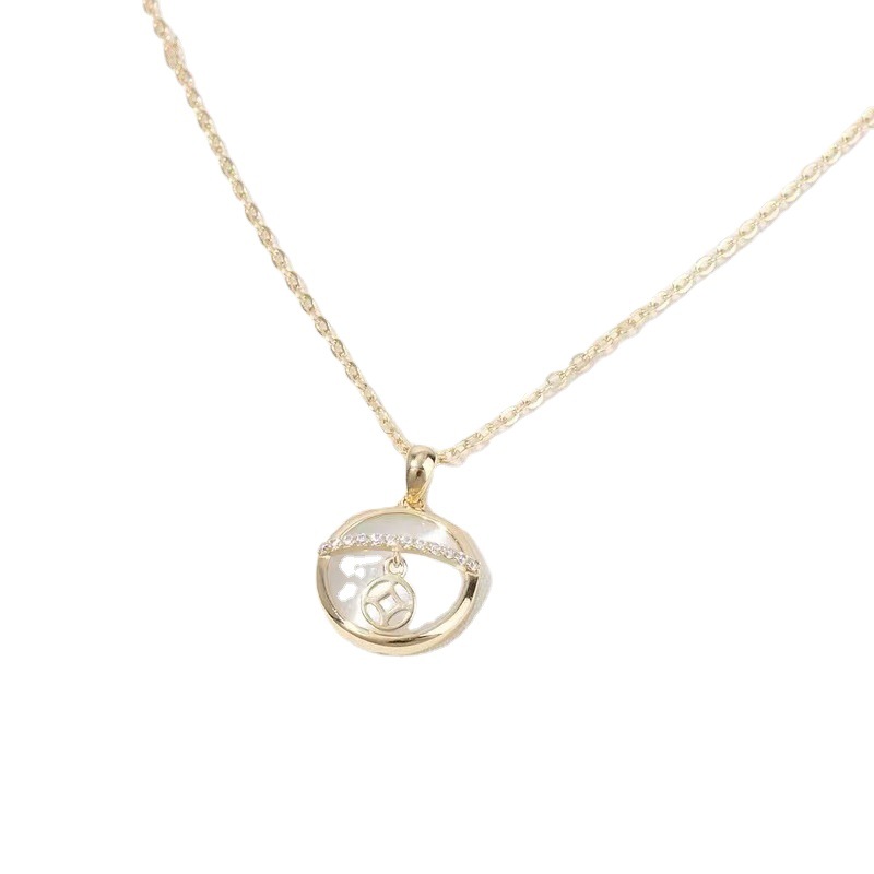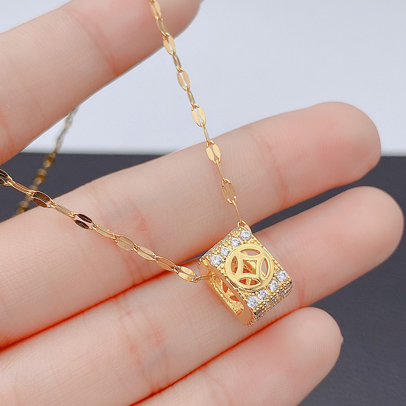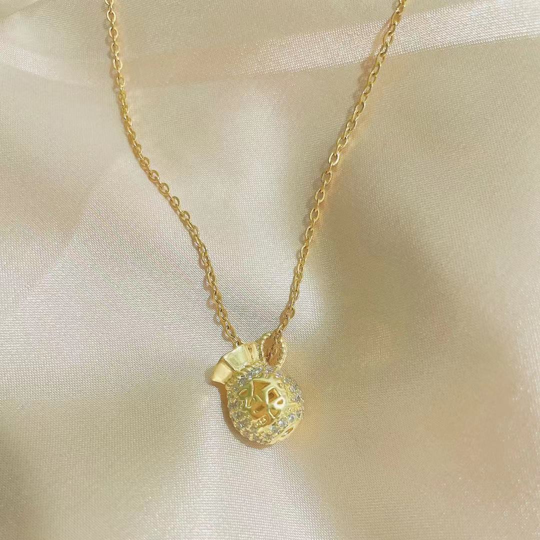 ファッションモデルの韓国版の金色の小銭袋のチタン鋼のネックレスの女性のデザインはダイヤモンドの個性の招財の鎖の小さい衆の首の鎖を入れます。