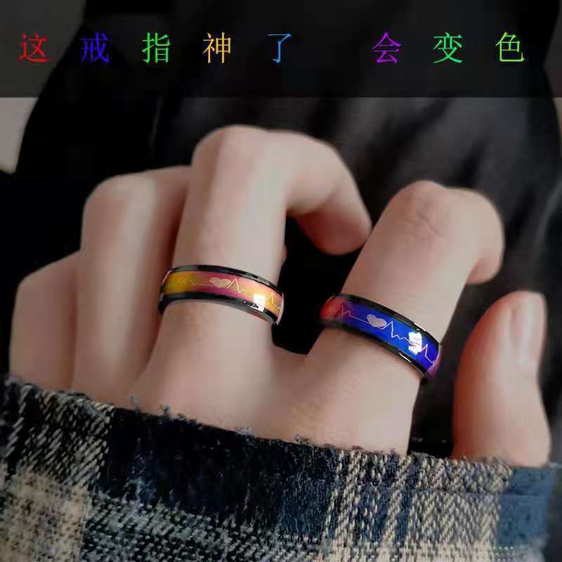 チタン鋼ステンレス指輪対戒感温変色気分カップルアクセサリーチタン鋼指輪日韓風ins冷淡