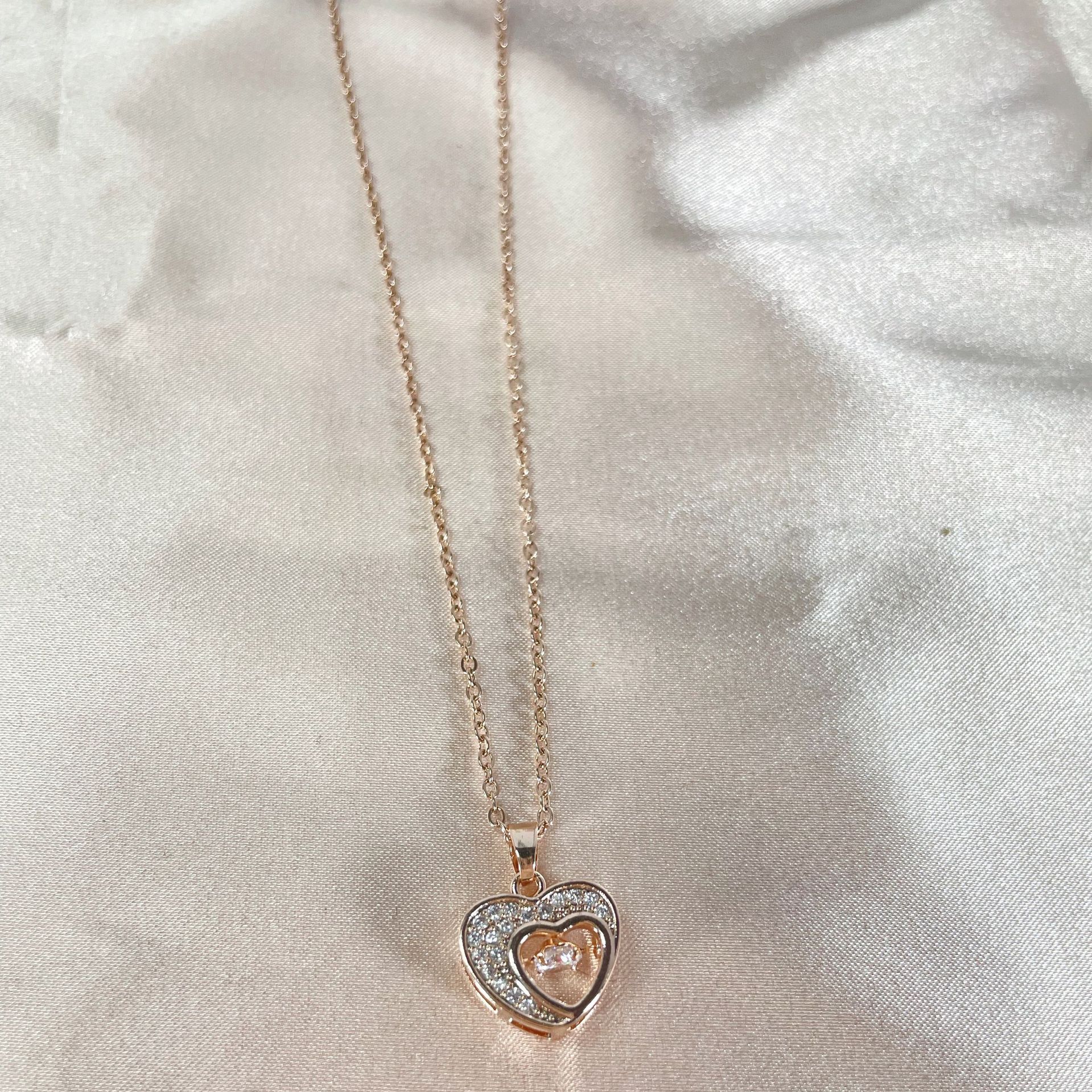 透かし彫りのダイヤモンドの双愛のネックレスの女性のバラの金は心を選んで軽く豪華にダイヤモンドのハート型の鎖骨の鎖を入れて簡単にネットの赤い同金を分けます。