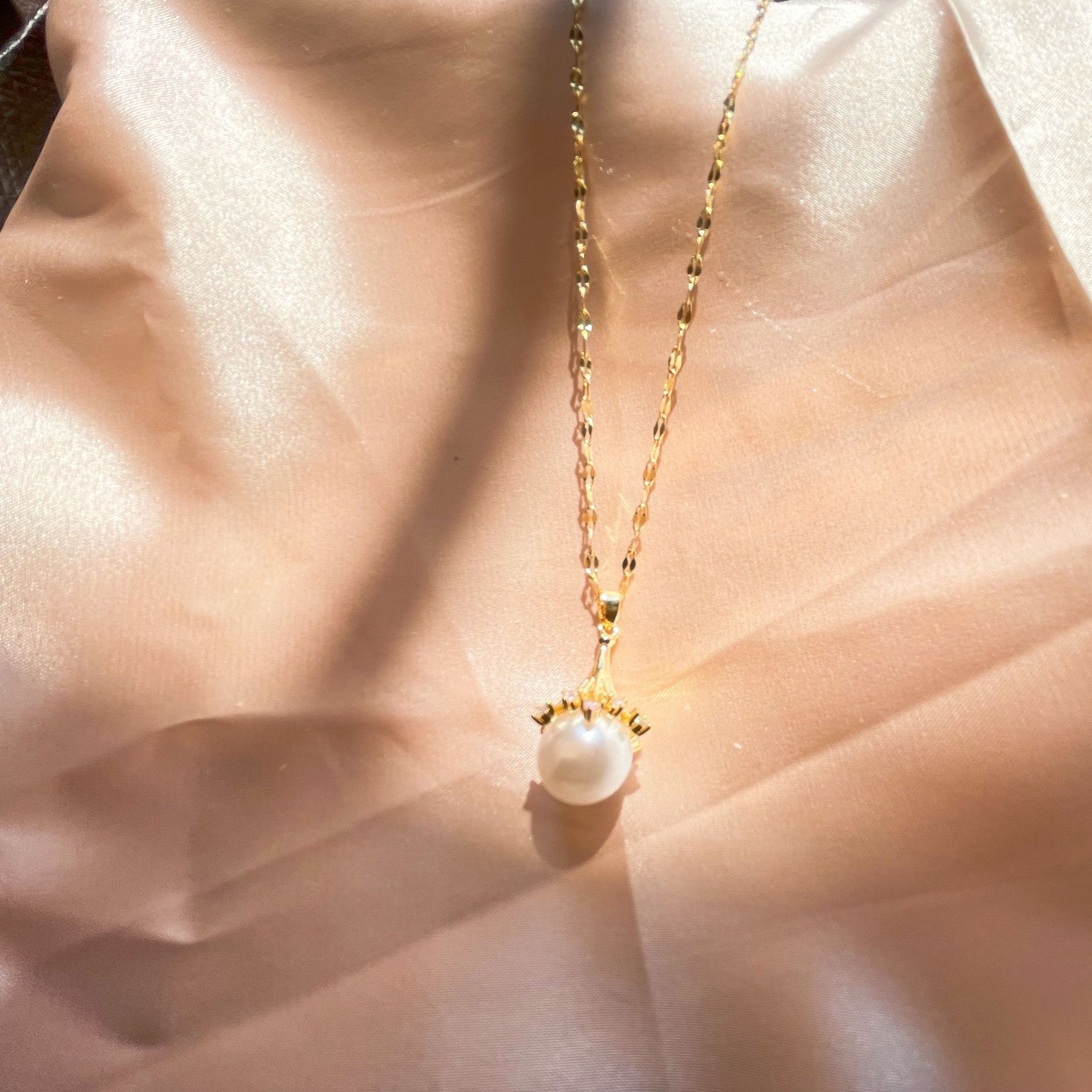 チタン鋼天然真珠フランス気質ins.小衆風高級感調節可能なネックレスシンプルな鎖鎖