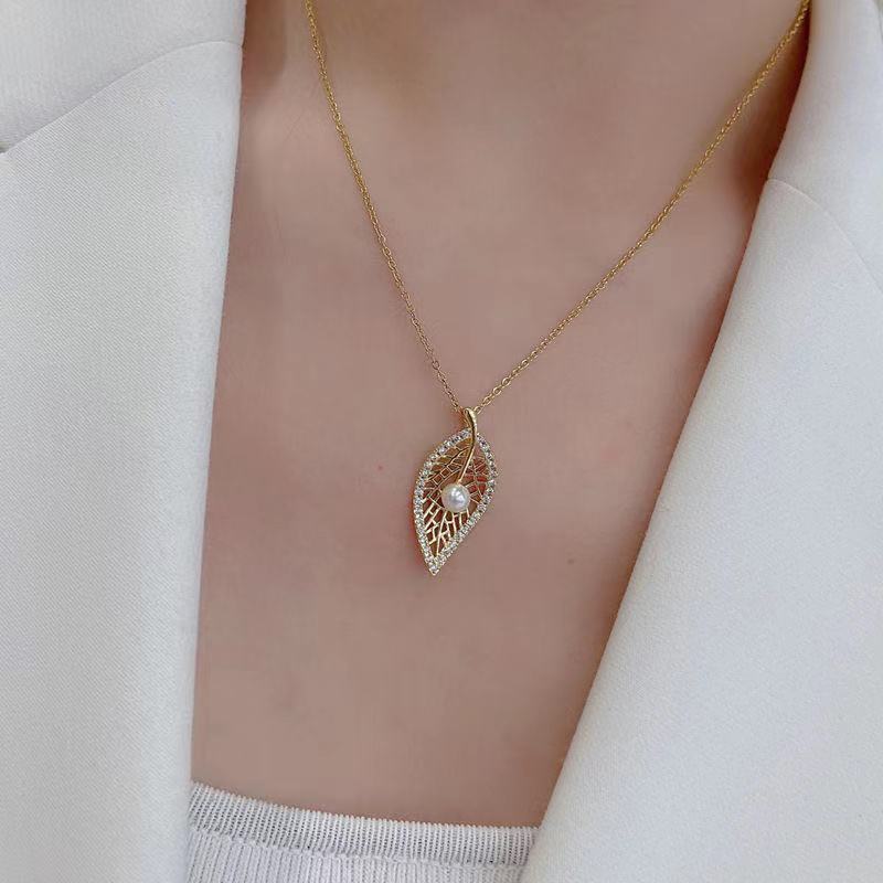 デザイン感の木の葉のネックレスの女性の夏の軽豪華な高級2021年の新型のネットの赤い組み合わせの鎖の短いタイプの首の鎖