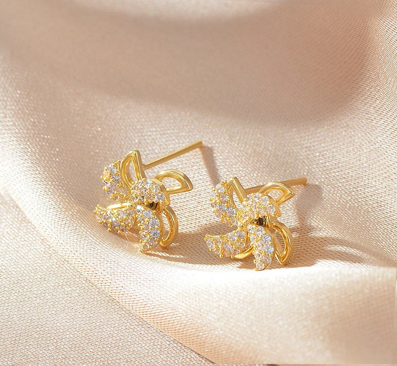 回転可能な小さな風車ピアスチタン鋼メッキ18k.金ピアス女性ネット赤同種気質ファッションピアス女性モデル