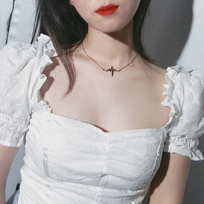 新作ハートビート電図ペンダント18kバラ金チタン鋼ネックレス女子学生少女感鎖骨チェーンシンプル気質