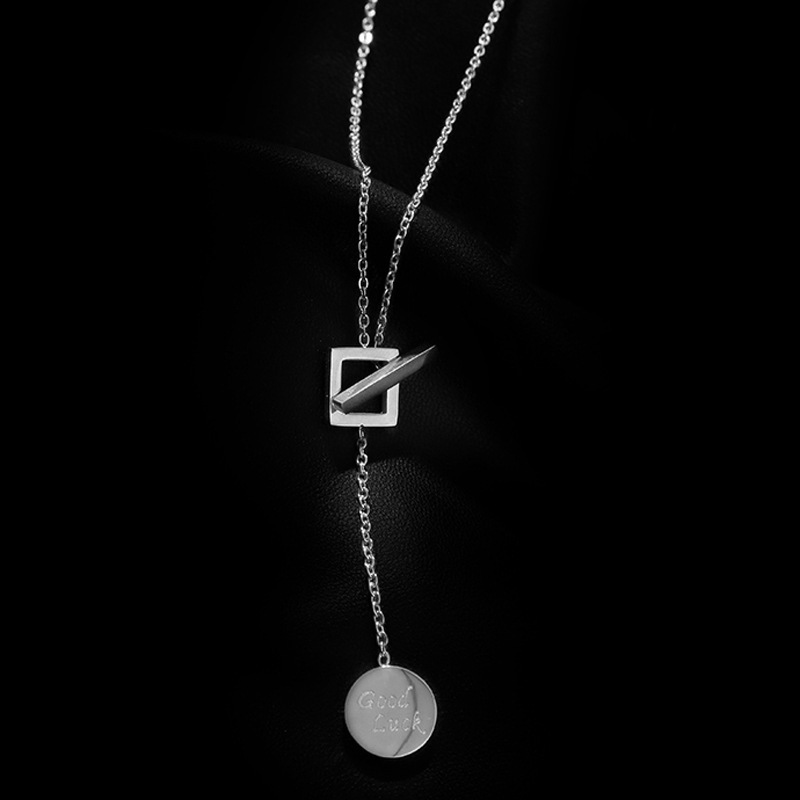 シンプルなアルファベットの正方形のブランドのペンダント秋冬のネックレスの女性のヒップホップのiinsの冷たい風の二重のセーターのチェーンの鎖の鎖