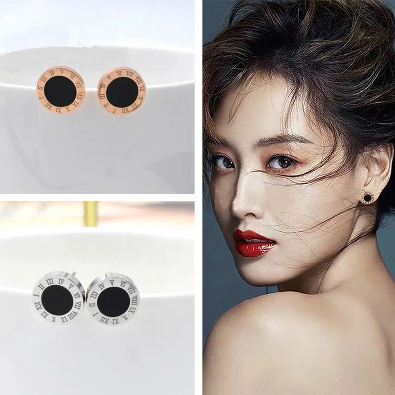 シンプルな円形フラッシュドリル太鋼ピアス女性ペンダントバラ金気質甘いクールイヤリング彩金チタン鋼は色落ちしない