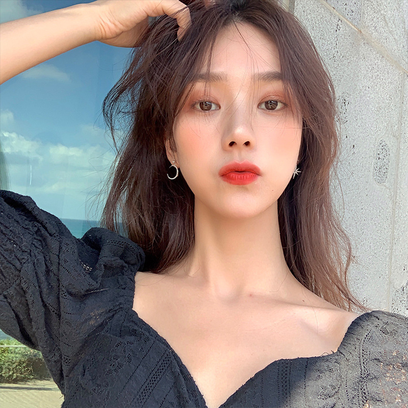 新型のシンプルなネットの赤いデザインの八芒星の月の気質のピアスの女性の新型の爆発金の韓国のシンプルな百合のピアス