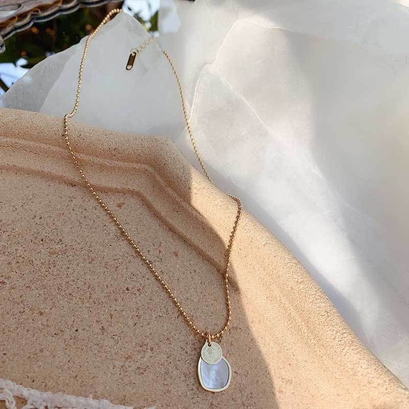 簡単なタイプのチタン鋼の早春の新型の貝殻の硬貨の美人の頭の鎖の骨の鎖は精巧で色あせない気質の金のネックレスの女性です。