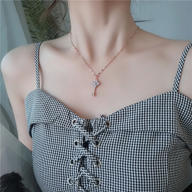日韓ネックレス女性チタン鋼気質金鎖骨鎖潮網赤ジルコン鍵ペンダント彼女に色落ちしないネックレス